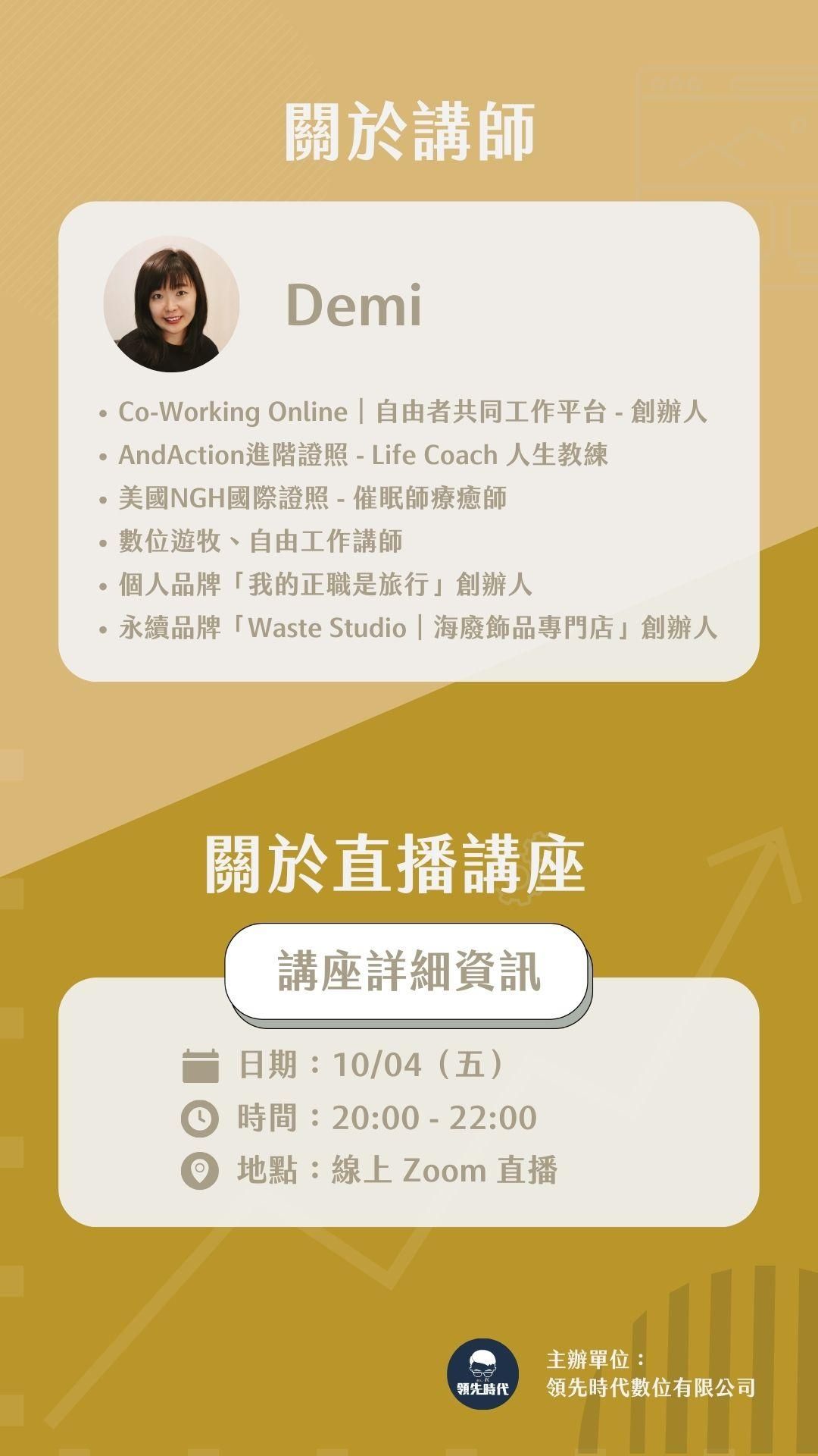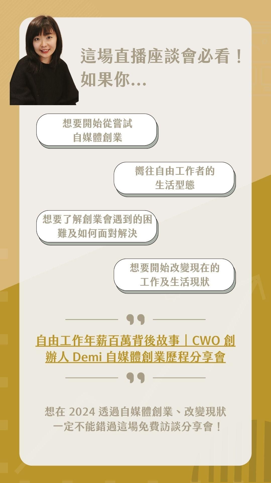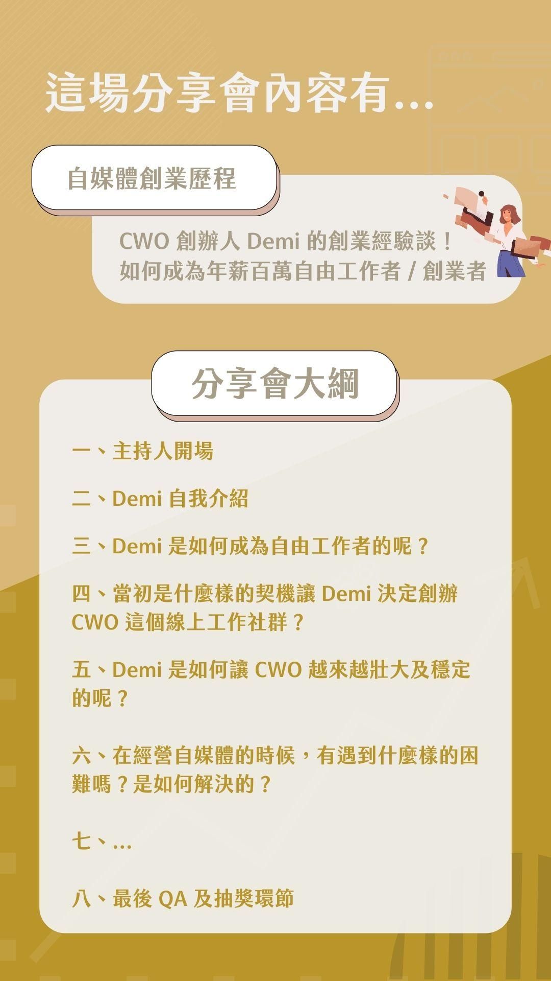 自由工作年薪百萬背後故事|CWO創辦人Demi 自媒體創業歷程分享會