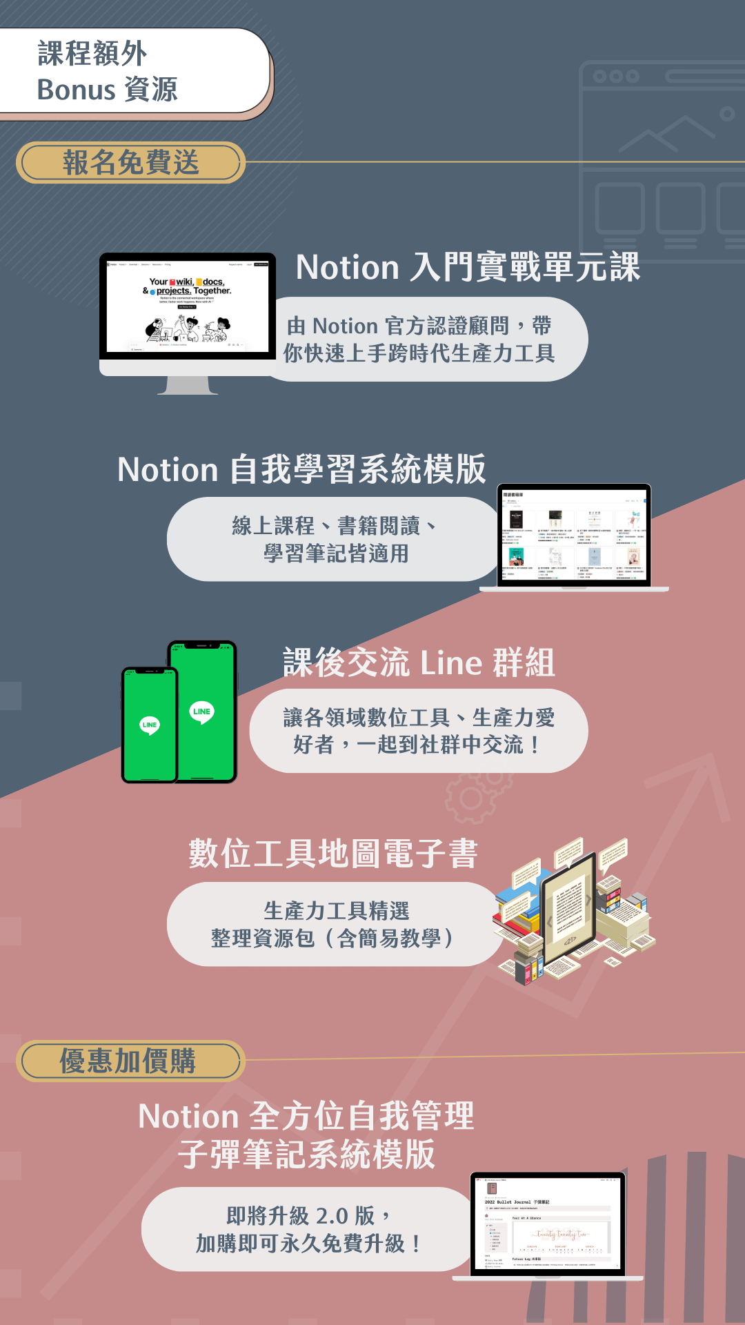 贈送課程:Notion 精選入門實戰單元課、Notion 自我學習系統模版