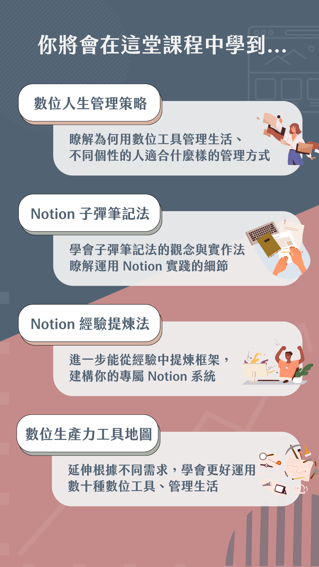 【高效工作 X 人生管理】從 Notion 框架實戰解析,到數十種數位工具應用攻略:子彈筆記法、經驗框架提煉法,帶走專屬於你的生產力數位工具地圖