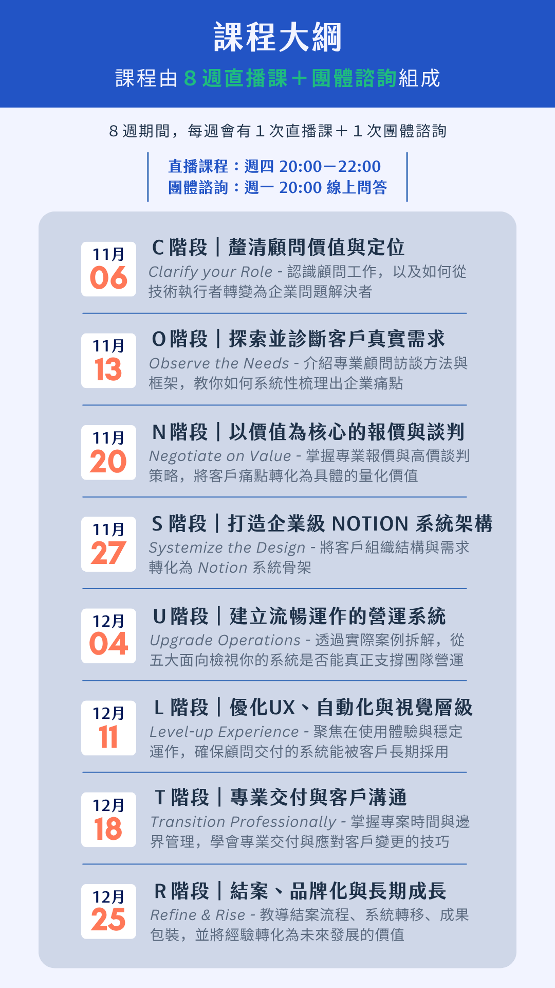 - 八週直播課程 & 每週 Q&A