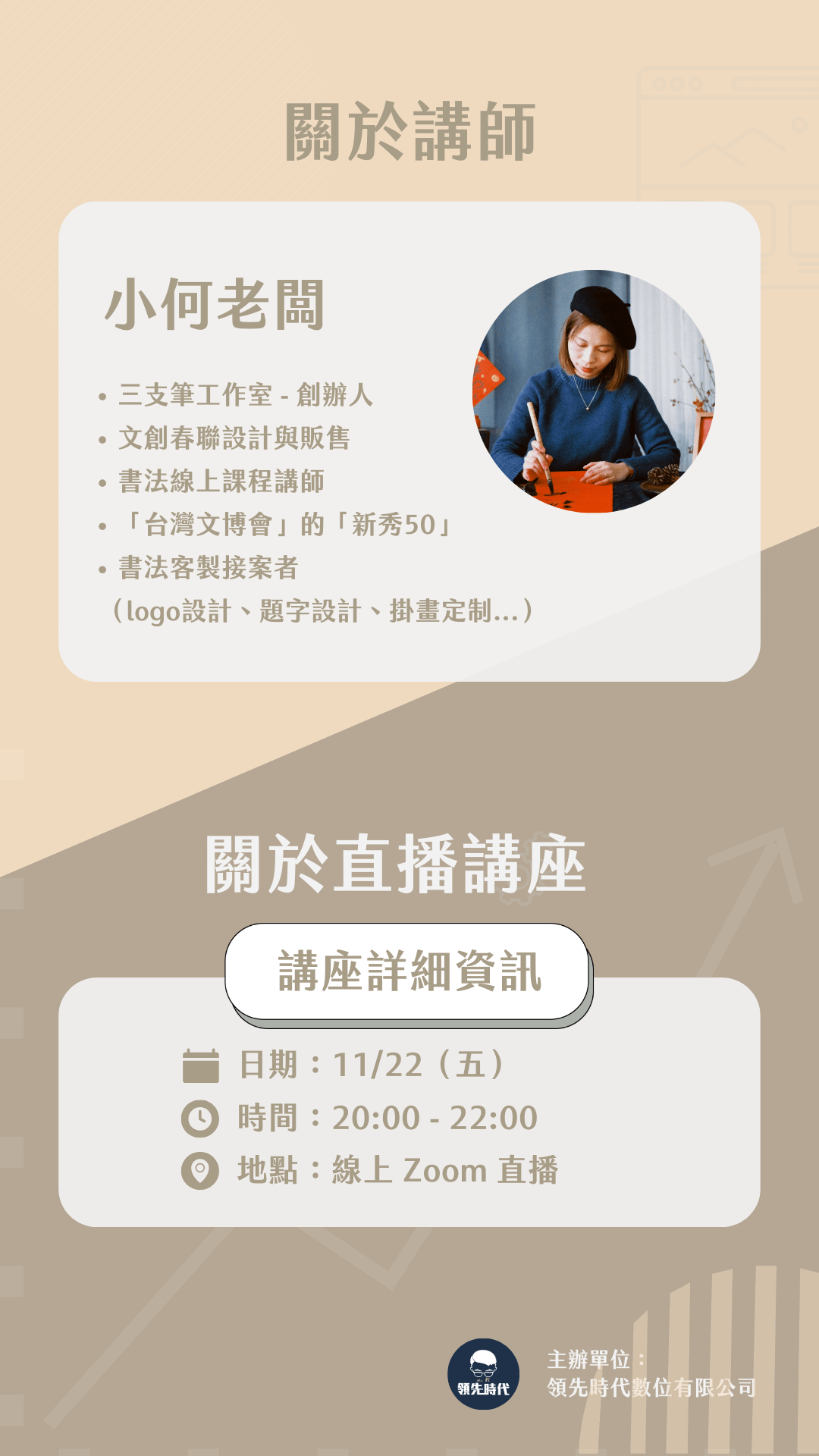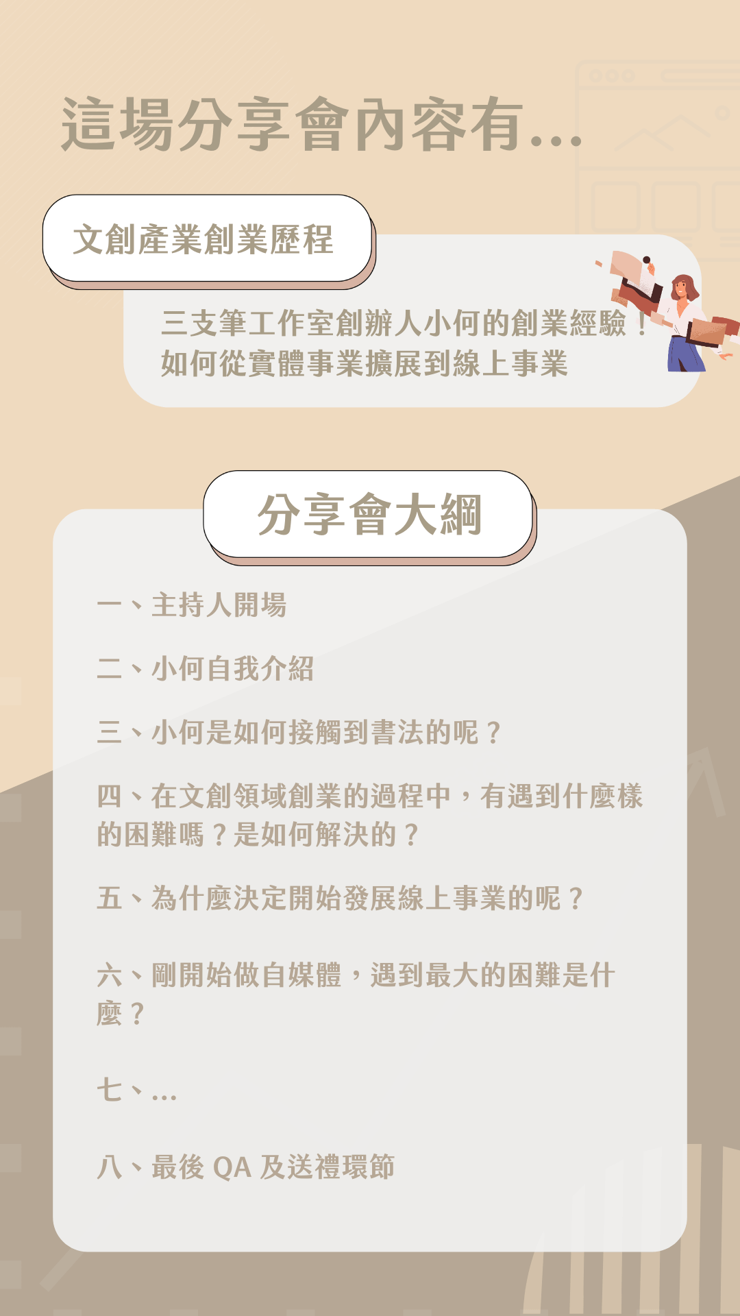 春聯市集起家到書法線上直播講師|三支筆書法工作室創辦人的創業故事