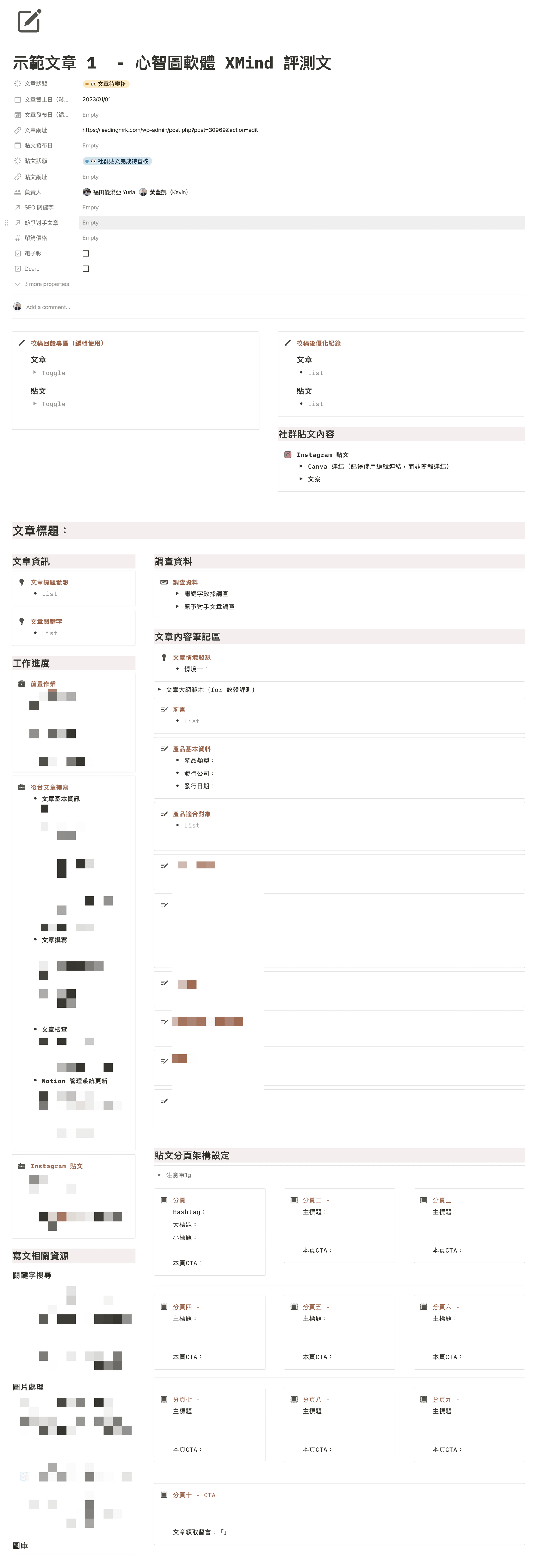 本模版內是直接包含「網站文章」及「社群貼文」的綜合待辦控管,若你是撰寫文章後會直接有轉發到社群進行曝光需求的人,那這套需求會非常適合你。